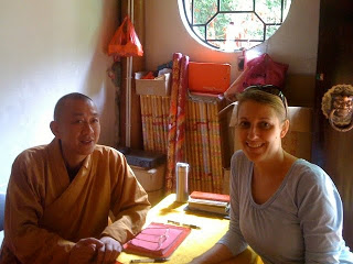 | A kind monk on Huangshan (Yellow Mountain) who penned some words of luck on a red ribbon for me. I’ve felt blessed the past couple of weeks. 🙂 |