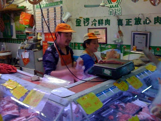 From these trips to the market, I am always aware that I stick out like a sore thumb. I know I’m the tall female lao wai customer of the market. But, as I continue to come back time and time again, I have developed a sort of informal and basic friendly rapport with some of the vendors. Although there may be some teasing going on about my strange gait or my “OK!!’s”, I feel that these friendly and harmless jibes are symbols of my acceptance into this small world below. Some day when I leave Nanjing, I will miss this personal and intimate experience and will have to accept shopping again at an impersonal, sterile and largely-structured big-name supermarket.
