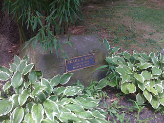 | Pearl Buck’s headstone at her home in Pennsylvania. She transformed her garden and landscaped it with bamboo and other native Asian plants to remind her of her faraway home. |