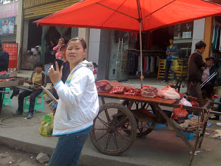 Data aside, scenes driving through the countryside on the 270 km stretch between Liupanshui and Guiyang also exposed a whole other China where people still live simpler lives, living off the land and its resources. Caught in the early afternoon traffic of Sunday market day, we witnessed farmers selling their own produce on the street; middle-aged sun-wrinkled men herding fat pink pigs into a truck to be taken to market; freshly killed meat being sold by the butcher on the side of the road; and even large chunks of Guizhou coal being sold in a family’s store front. Transformed to Pearl Buck’s The Good Earth, I witnessed in the far off distance farmers plowing with oxen in their fields. Family grave plots on the hills next to the highway revealed communities who found their homes on the same land of their ancestors several generations back. These communities have clung to and carried on the long standing traditions and methods of livelihood of their ancestors.